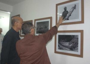 La exposición incluye también una magnífica muestra fotográfica de Martín Rodríguez, quien documenta el proceso creativo de Cabral en su taller, desde el primer contacto con el tronco de madera hasta la pieza final terminada. Sus imágenes capturan la fuerza, la sensibilidad y el diálogo íntimo entre el artista y la materia.
